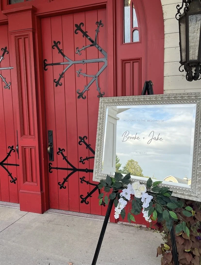 Design work included: Save the Dates, Invitation Suites, Wedding Day Post Hotel Guest Newspaper, High Heel Embellishments from the MOB, Embroidered MOB & MOG Handkerchiefs, Embroidered FOB & FOG Tie Patches, Vow Books, Welcome Mirror Sign, Ceremony Programs, Confetti Popper Labels, Bar Sign, Custom Corn Hole Boards, Seating Chart Mirror Sign, Wine Bottle Table Numbers, Place Cards, Menu Sign, Cake Sign, Cards & Gifts Sign, In Loving Memory Sign